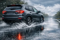 Water is the enemy of traction. When it builds up under the tire, grip disappears fast.